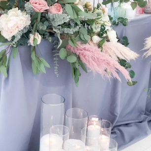 Помните о том, что оформление свадеб возможно не только живыми цветами, которые порой стоят баснословно дорого. Сейчас существуют сотни вариантов украшения с использованием ткани, лент, мешковины, бумаги, деревянных спилов и прочих материалов. Самое главное, чтобы свадебный декор идеально соответствовал стилю и тематике вашего праздника, а из чего он будет выполнен, по сути, не так уж и важно.